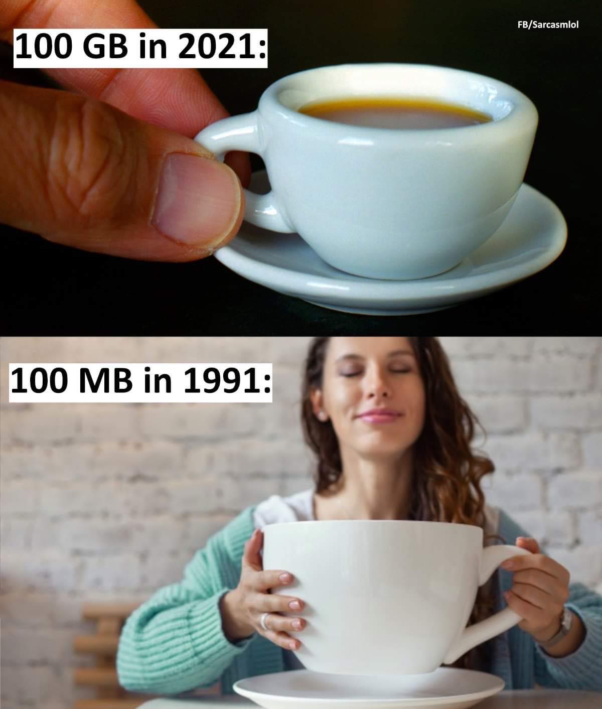 正如最開始時所說,電腦科技一日千里,幾年前買這些硬碟,都是以Gig(Gigabyte)計算。但現今已轉了「單位」,變成了T(Tetrabyte)。我相信很多人都會像我家一樣,「櫃筒底」放著一堆被淘汰,但卻又不捨得掉丟的舊硬碟機。今天,靈修看完經文後,正在思想可以分享什麼,就從Facebook上看到一幅以「杯」來作比喻的圖片,很能反映我在上面所說的現實。我剪了下來,讓大家一同分享。
