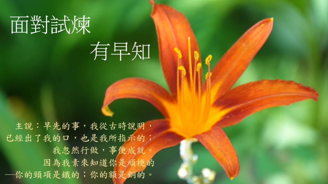 過去我對以賽亞書產生興趣,開始更深入去研讀,是因著李思敬博士幾個與以賽亞書有關的講座。從最基本的「以賽亞書導讀」,到漢語聖經協會一整套由李思敬博士主講的聖經講座,一連二十講的「以賽亞書釋義—審判中的拯救」,讓我從入門,一直到進深的,從以賽亞書切入來去看神在以色列人,特別是在以色列國中興時期,以色列人在豐足中悖逆神的歷史。而他們的悖逆,最後引發了神對他們的審判,最終導至整個以色列的亡國。而今天我們讀的這段落,以賽亞書第48章這段經文,其歷史背景就是以色列亡國的時候,耶和華透過先知以賽亞給他們帶來的安慰。