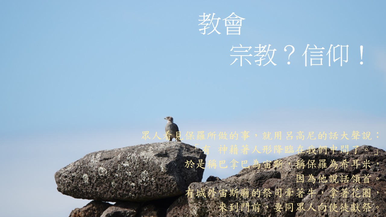 昔日,保羅就曾走入一處異文化中,而他面對著的群眾,正正就是一群「民間宗教」感十分強的人群中。面對著「宗教」與「信仰」的落差,保羅的經歷又是如何?